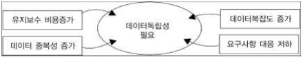 데이터독립성은 지속적으로 증가하는 유지보수 비용을 절감하고 데이터 복잡도를 낮추며 중복된 데이터를 줄이기 위한 목적이 있다. 또한 끊임없이 요구되는 사용자 요구사항에 대해 화면과 데이터베이스 간에 서로 독립성을 유지하기 위한 목적으로 데이터 독립성 개념이 출현했다고 할 수 있다.