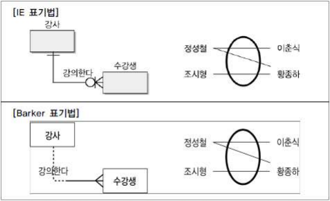 우측의 각 인스턴스들은 개별적인 연관성을 가지고 있을 수 있으며, 이것을 집합하여 '강의'라는 관계를 도출한다.