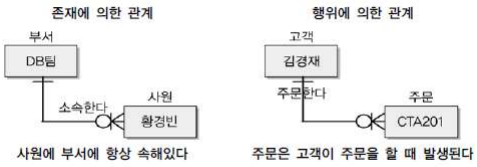 엔터티의 인스턴스 사이의 논리적인 연관성으로서 존재의 형태로서나 행위로서 서로에게 연관성이 부여된 상태