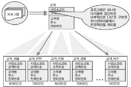 일의 처리되는 양이 한군데에 몰리는 현상은 어떤 업무에 있어서 중요한 업무에 해당되는 데이터가 특정 테이블에 있는 경우에 발생이 되는데 이런 경우 트랜잭션이 분산 처리될 수 있도록 테이블단위에서 분할의 방법을 적용할 필요가 있는 것이다.