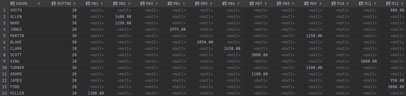AVG(CASE MONTH WHEN 1 THEN SAL END) M01,