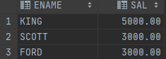 SELECT TOP(2) WITH TIES ENAME, SAL FROM EMP ORDER BY SAL DESC;