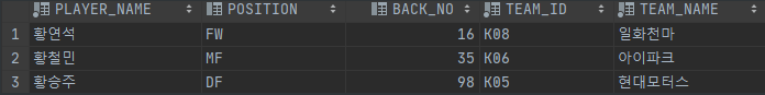 WHERE PLAYER_NAME LIKE '황%';