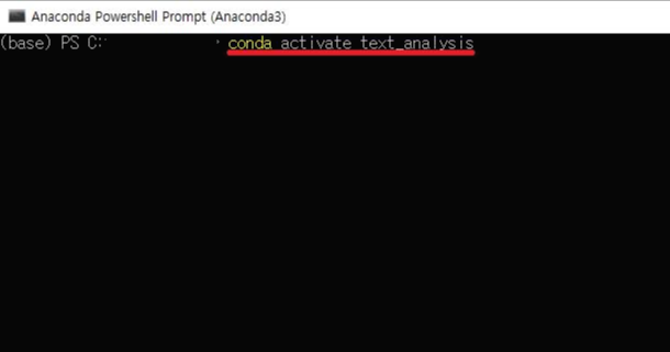 저의 경우, 가상 환경명을 text_analysis로 지정하였기 때문에 위 이미지처럼 작성했습니다.